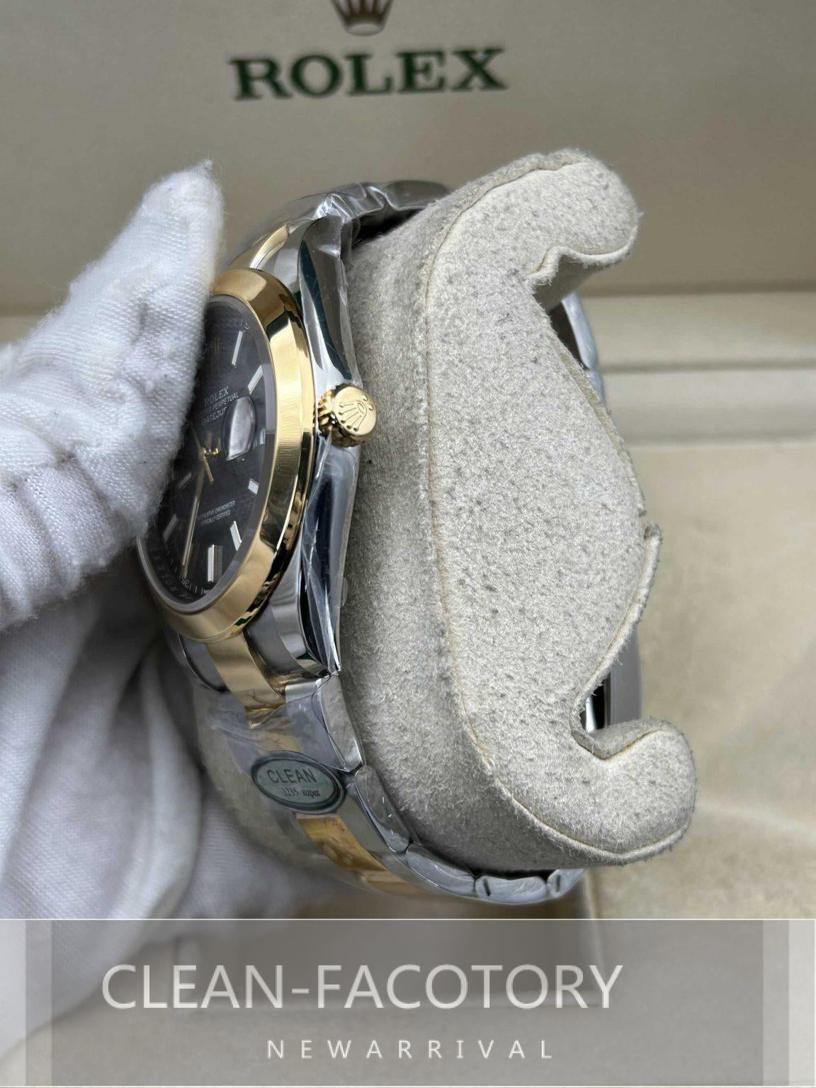 💎 Σημείωση: Η Clean Factory έχει αναβαθμίσει τη σειρά Datejust Two-Tone με πιο ρεαλιστικό Everose φινίρισμα και λεπτομερέστερη μετάβαση μεταξύ των μετάλλων, ώστε να προσεγγίζει τέλεια το αυθεντικό Rolex 126331. Το βάρος, το “feel” του Jubilee μπρασελέ και η απόχρωση του Slate καντράν έχουν αναπαραχθεί με απόλυτη πιστότητα, προσφέροντας εμπειρία πολυτέλειας σε κάθε λεπτομέρεια.
