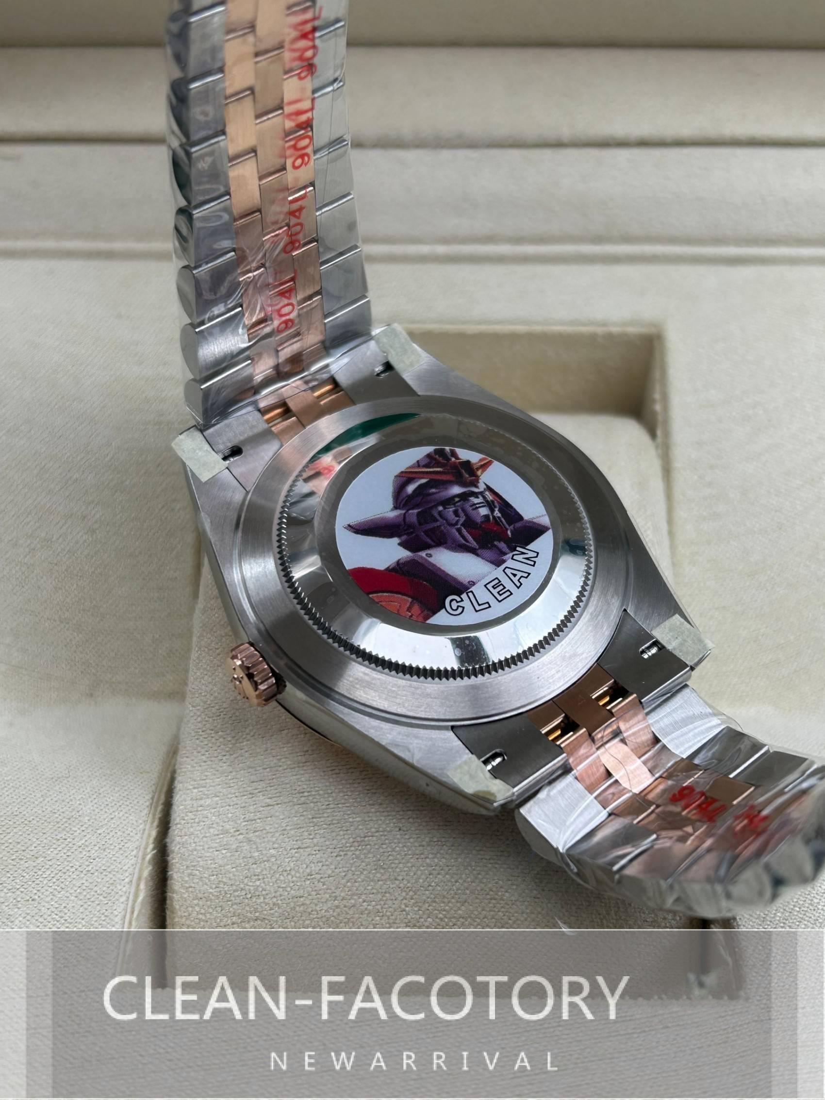 💎 Σημείωση: Το Grey Fluted Dial σε συνδυασμό με το Rose Gold είναι ένας από τους πιο δημοφιλείς και πολυτελείς χρωματικούς συνδυασμούς της σειράς Datejust. Η Clean Factory αποδίδει εξαιρετικά το ροζ χρυσό χρώμα (Everose tone), αλλά και το texture του καντράν, προσφέροντας ένα αποτέλεσμα σχεδόν αδύνατο να ξεχωρίσει κανείς από το αυθεντικό.