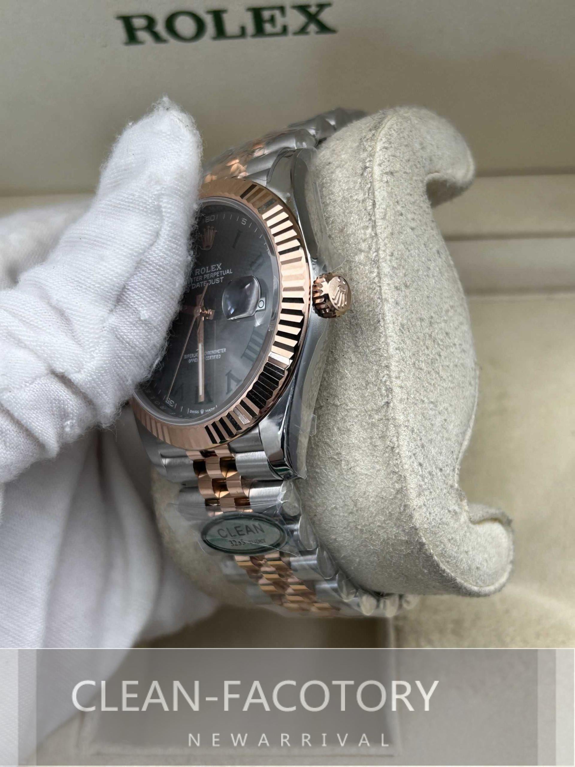 💎 Σημείωση: Η Clean Factory έχει αναβαθμίσει τη σειρά Datejust Two-Tone με πιο ρεαλιστικό Everose φινίρισμα και λεπτομερέστερη μετάβαση μεταξύ των μετάλλων, ώστε να προσεγγίζει τέλεια το αυθεντικό Rolex 126331. Το βάρος, το “feel” του Jubilee μπρασελέ και η απόχρωση του Slate καντράν έχουν αναπαραχθεί με απόλυτη πιστότητα, προσφέροντας εμπειρία πολυτέλειας σε κάθε λεπτομέρεια.