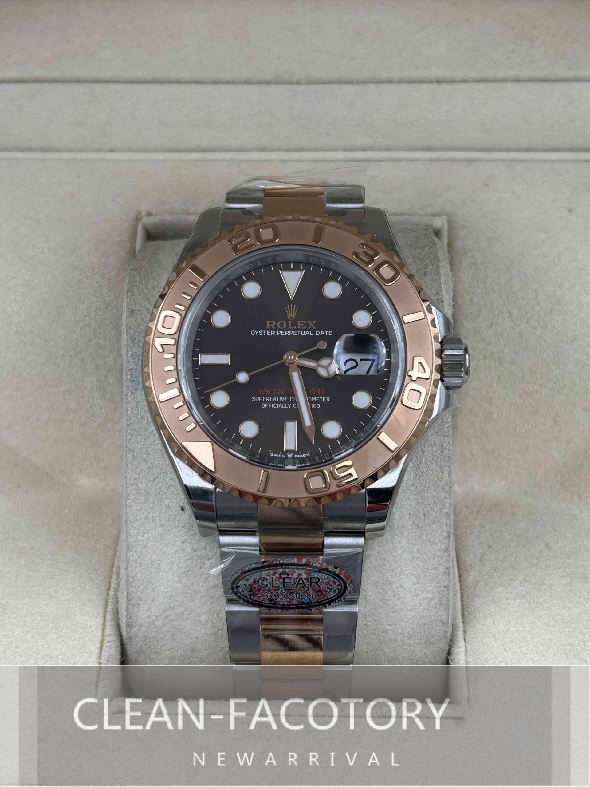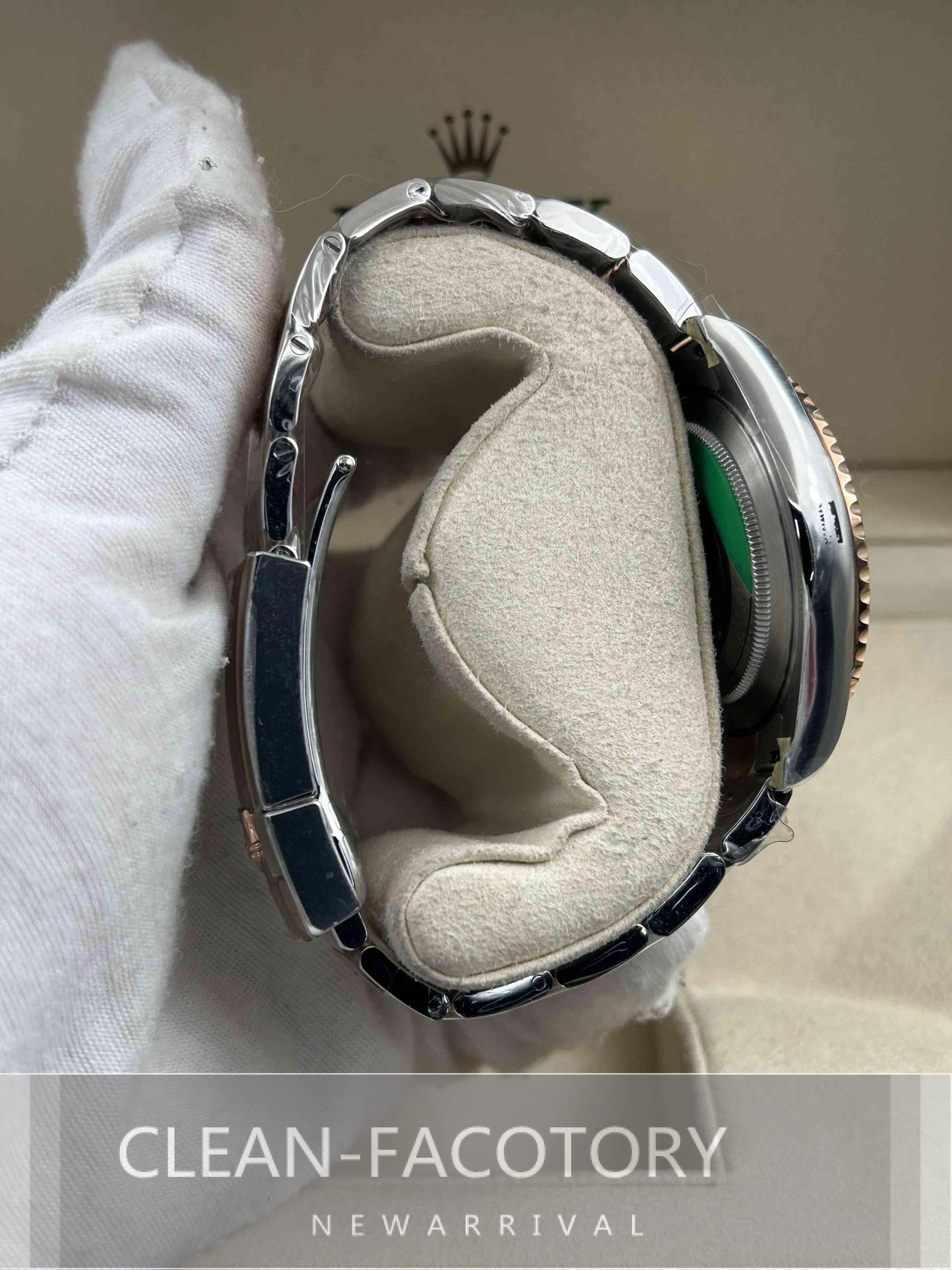 Η Clean Factory έχει πετύχει εξαιρετική ακρίβεια στην απόχρωση του Everose Gold, αποδίδοντας τέλεια τη διχρωμία του αυθεντικού Rolex Yacht-Master 126621, με ρεαλιστικό βάρος και άψογη αίσθηση στον καρπό.